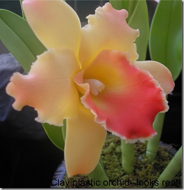 This last picture is not a real orchid. It is actually made from clay plastic. It looks real, doesn’t it?